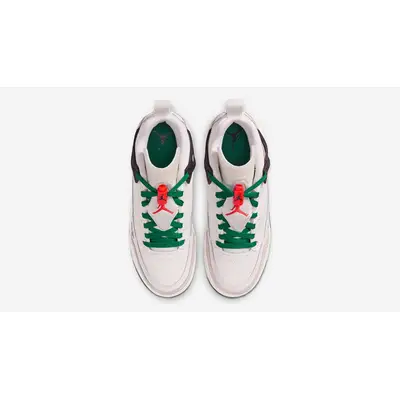 Grüne Schnürsenkel und leuchtend rote Details an Jumpman Logo und Lace Locks erinnern an Sals Pizzeria aus dem Film Do The Right Thing von 1989. Besonders auffällig ist das Kragendetail, das mit zwei Fingern die Zahl 23 darstellt, eine klare Referenz an Michael Jordans legendäre Rückennummer.